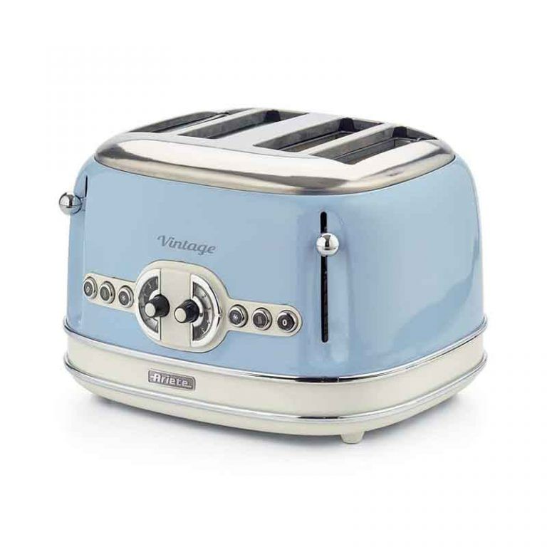 Ariete 156 Vintage Toaster 4 Slices 1630W Blue. 4 slots with separate 2 2 controls. 6 levels of browning