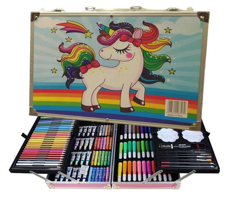 Art Supplies Case, 145 Pack Painting, Coloring, Drawing Double Layer Aluminum Gift Box