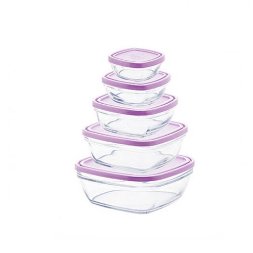 DURALEX Freshbox Clear Square 5 pcs Set + Purple Lid – DRL 9114AS05A0111