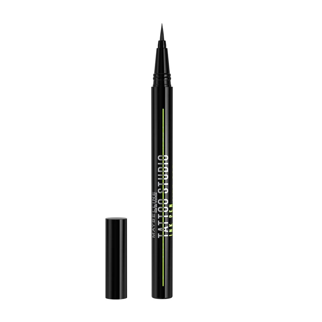 Meet Our Ink That Withstands It All: Maybelline Tattoo Studio Ink Pen Liquid Eyeliner is waterproof, fade resistant, smudge resistant and flake resistant. Black saturated pigments deliver intense impact with 1 stroke intensity and up to 24 hours of wear