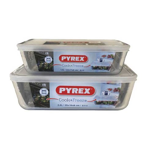Pyrex Cook & Freeze Set Of 2 Dishes With Lids 1.5L & 2.6L