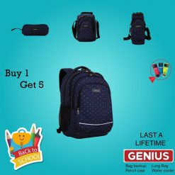 School 16 inch Backpack 5 in 1 Genius – Lunch pack + Water bottle + Bottle bag + Pencil case – Points