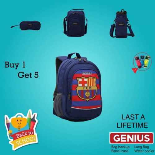School 16 inch Backpack 5 in 1 Genius – Lunch pack + Water bottle + Bottle bag + Pencil case – Barcelona